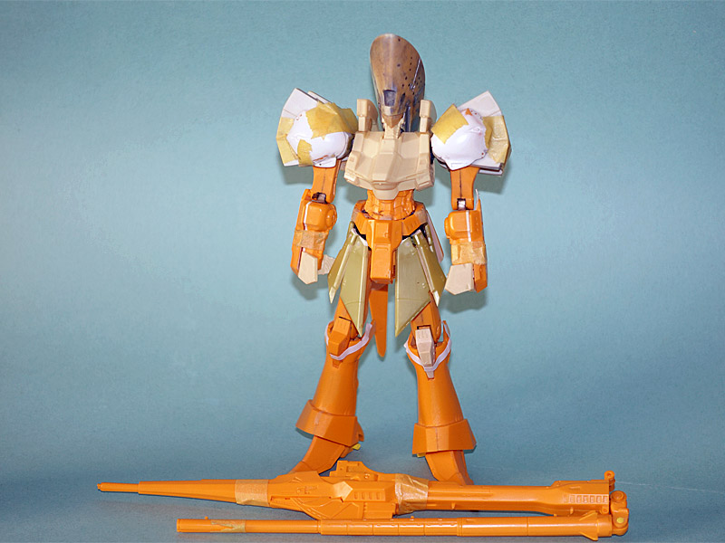 幸いなことに視野も視力もほぼ回復し、リハビリを兼ねて少しずつ美プラのパチ組とかをやっています(月末の30MSの再販で欲しかったものをあらかた確保できました)。画像は(何度目か忘れた)現状確認、ヒザが付いた状態です。