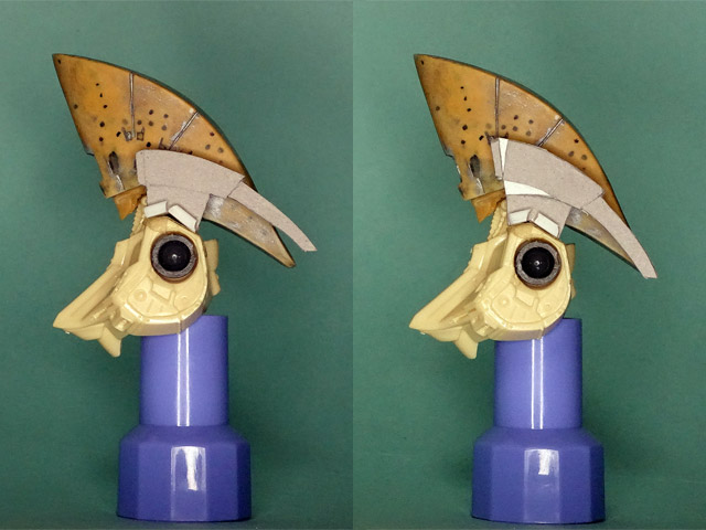 読み込み速度が遅くならない様、ページを分けました。KOGラキシス製作の先頭ページはこちらです。 2026年も挑戦は続きます。昨年末に明らかになった、インテーク状のユニットの角度を修正すべく、レジンパーツの形状をボール紙に写して検討。向かって左がキットパーツの形状、向かって右が角度を調整した状態です。